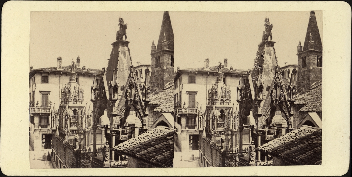 Stereobild, "Arche scaligere" gravar utanför kyrkan Santa Maria Antica i Verona, Italien.