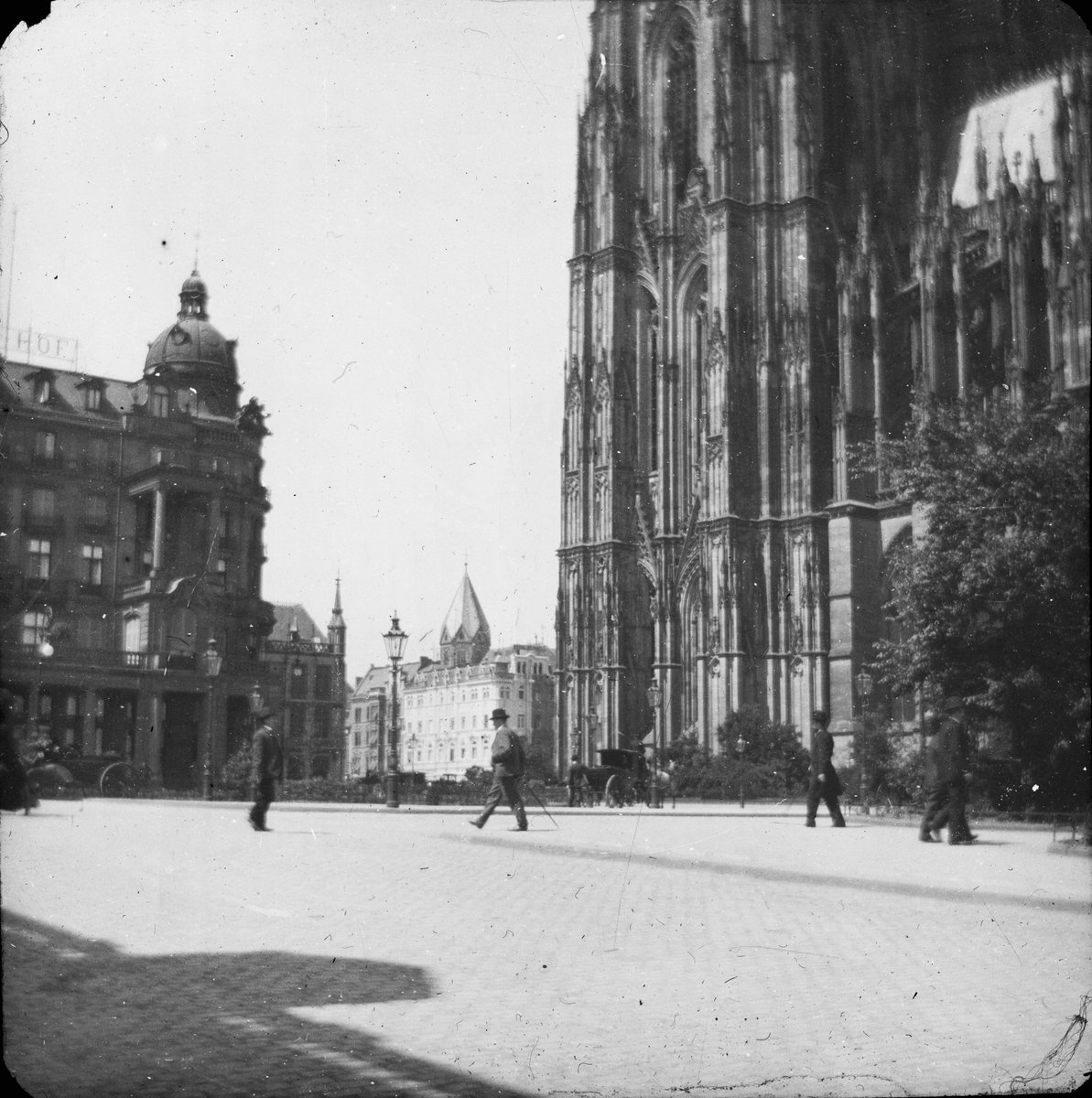 Skioptikonbild med motiv av katedralen i Köln, Hohe Domkirche St. Peter und Maria.