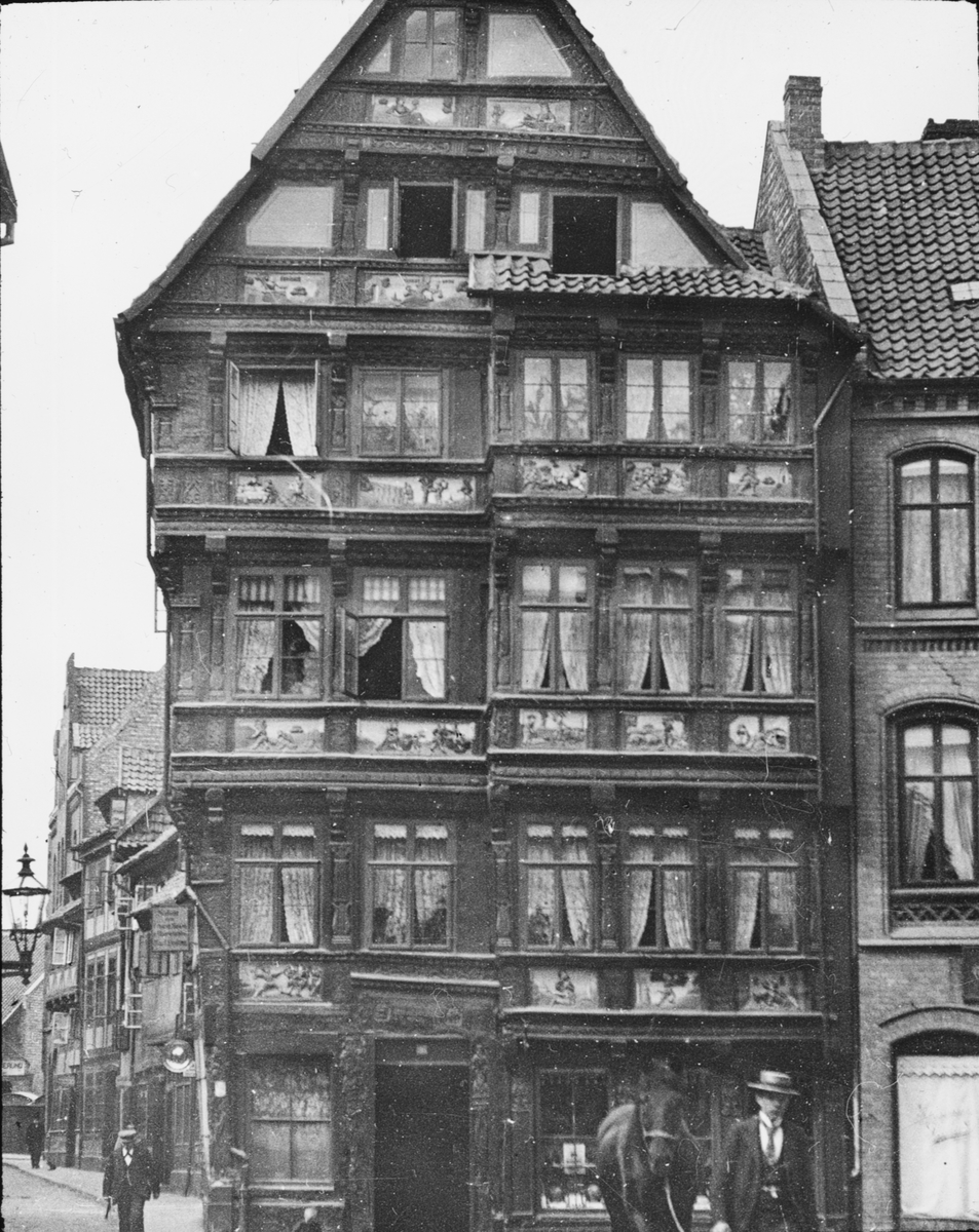 Skioptikonbild med motiv av okänt hus i Hildesheim.