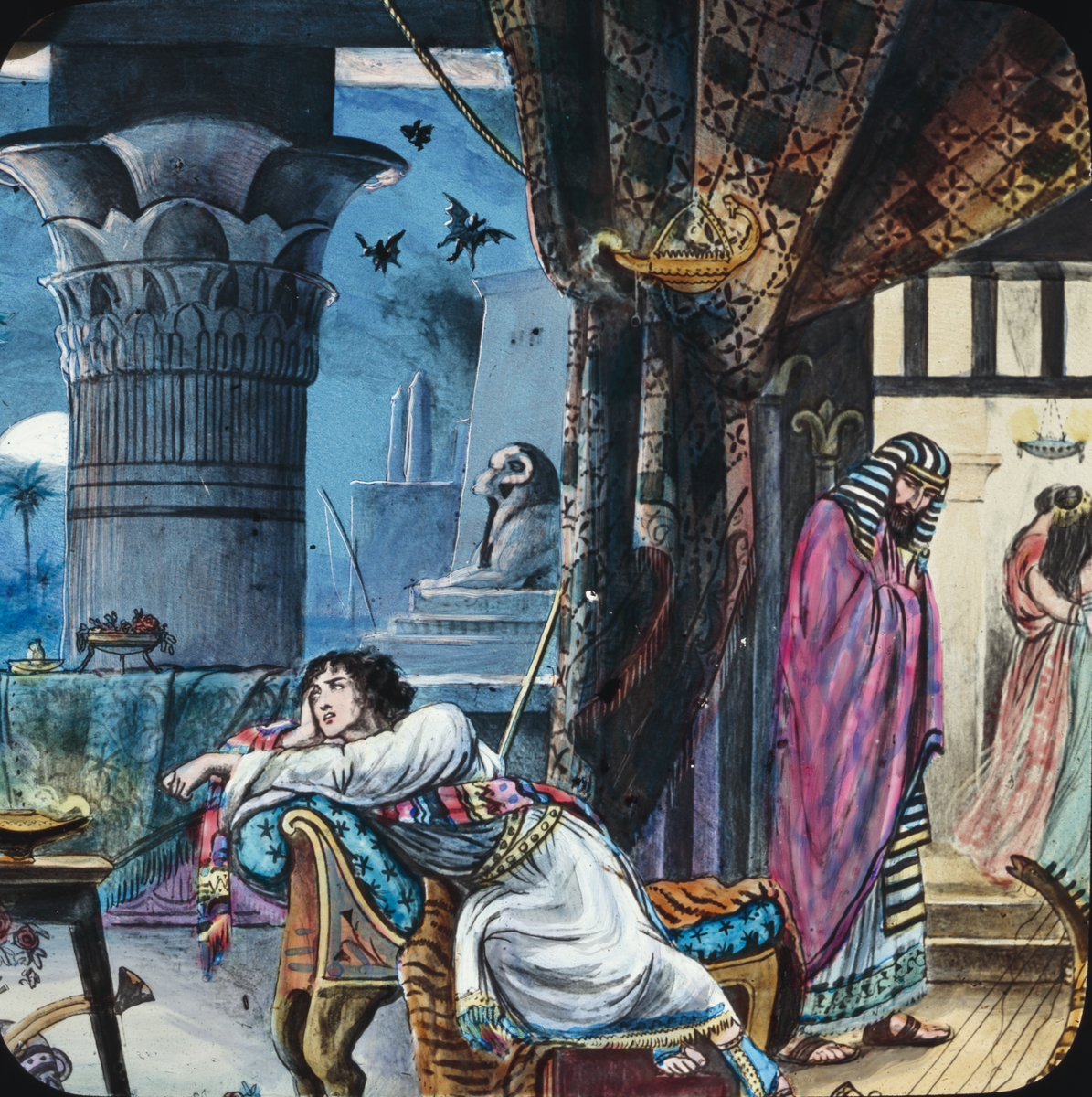 Kolorerad skioptikonbild med motiv från Egypten.