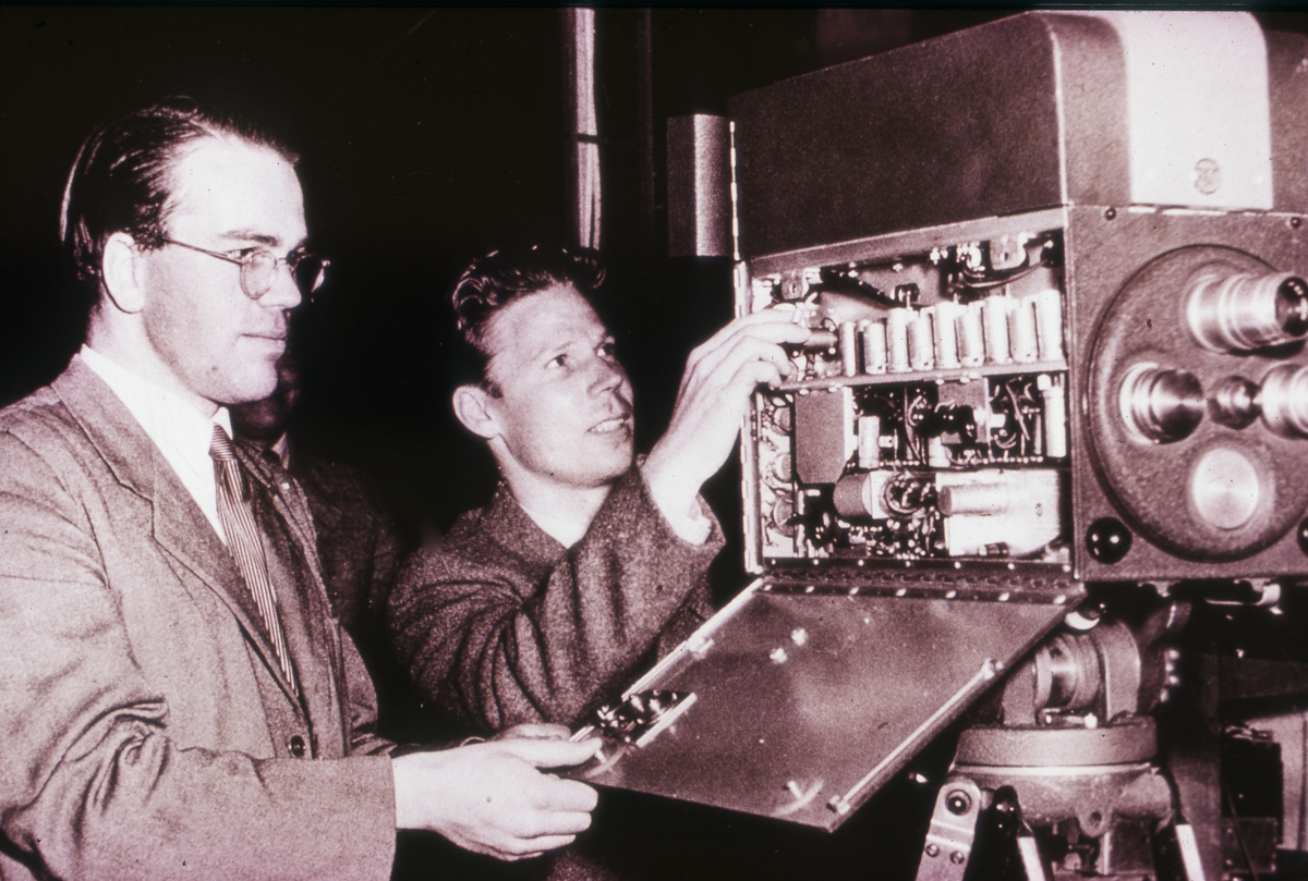 Ur Televerkets diabildspel "Ljud och bild från oss till Dig". Bilder som visar Televerkets verksamhet och användare (privatkunder).