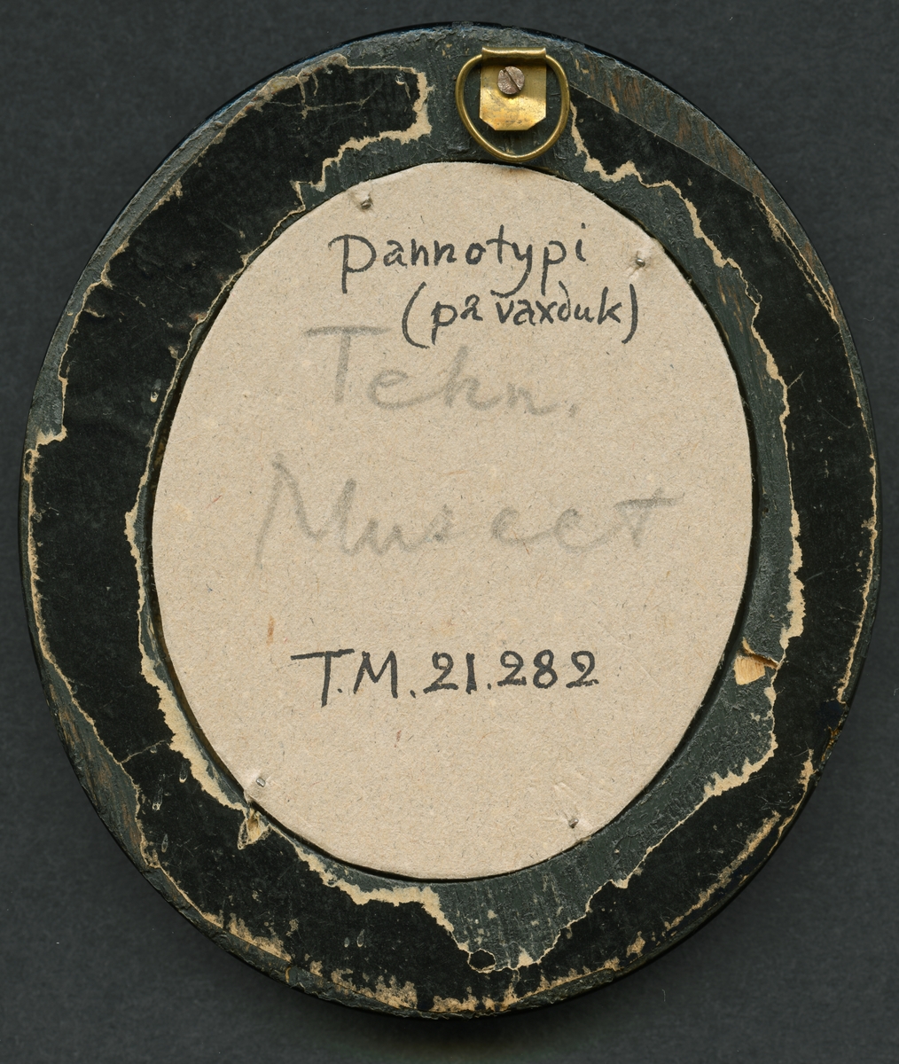 Baksida av pannotyp. Flickporträtt, helfigur.