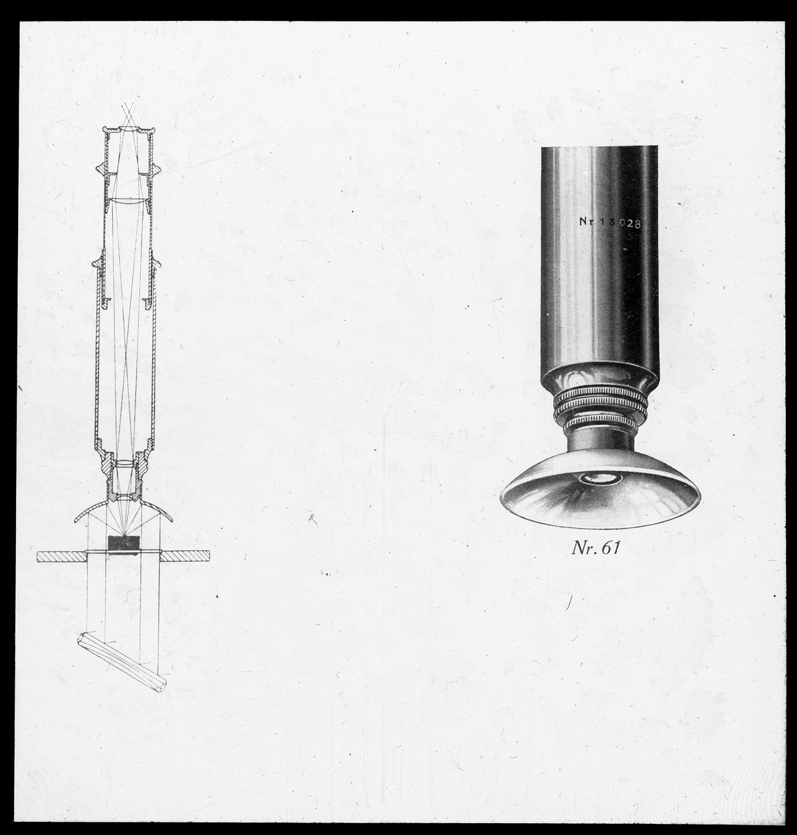 Skioptikonbild från Institutionen för fotografi vid Kungliga Tekniska Högskolan. Använd av professor Helmer Bäckström som föreläsningsmaterial. Bäckström var Sveriges första professor i fotografi vid Kungliga Tekniska Högskolan i Stockholm 1948-1958.