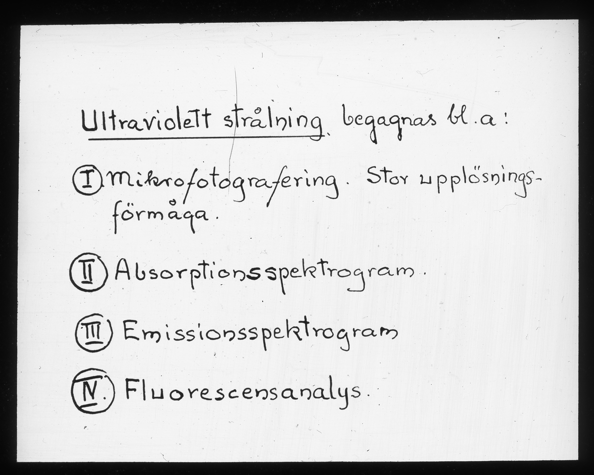 Skioptikonbild från Institutionen för fotografi vid Kungliga Tekniska Högskolan. Använd av professor Helmer Bäckström som föreläsningsmaterial. Bäckström var Sveriges första professor i fotografi vid Kungliga Tekniska Högskolan i Stockholm 1948-1958.
