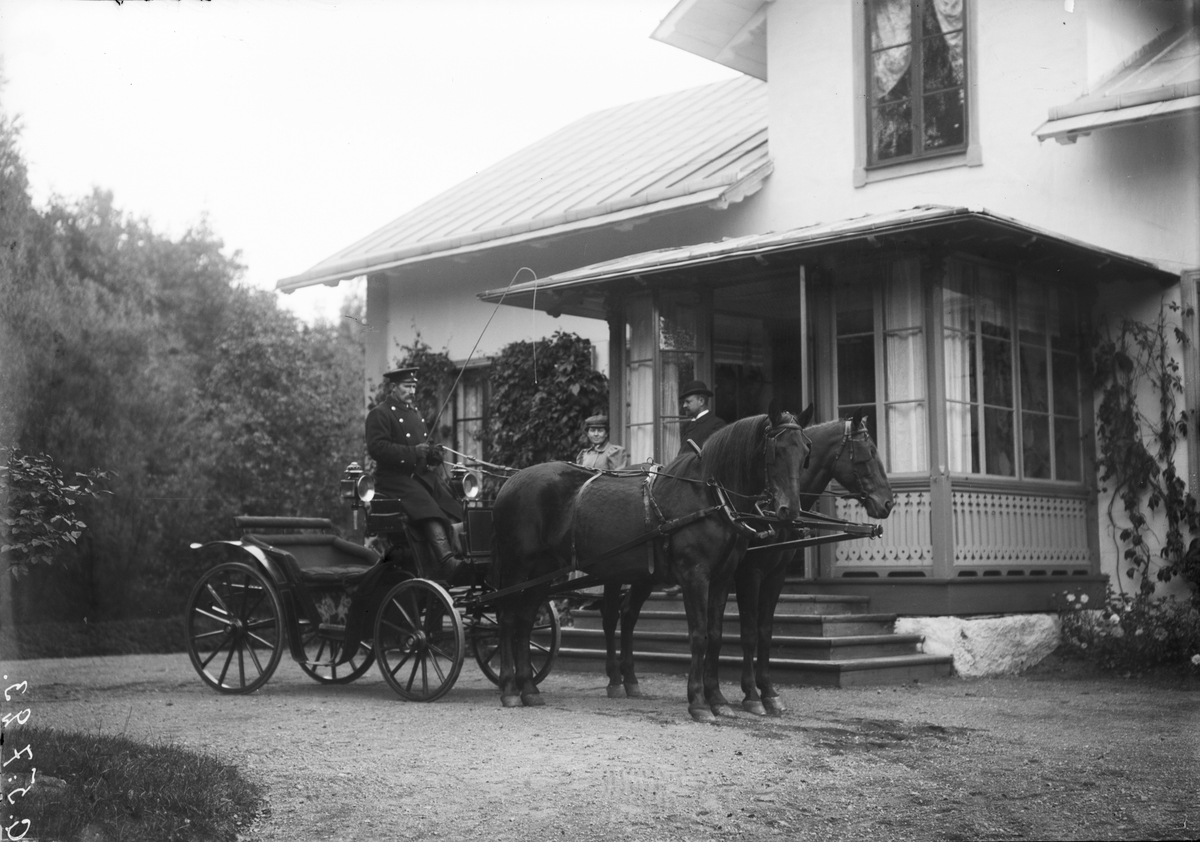 Ekipage vid veranda. Okänd plats.