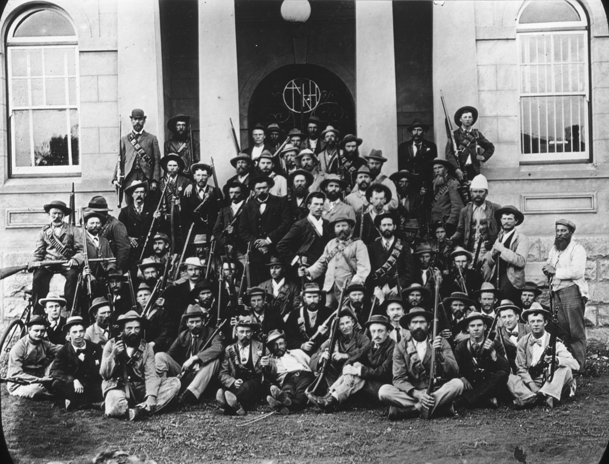 Skioptikonbild med motiv av beväpnade män.
