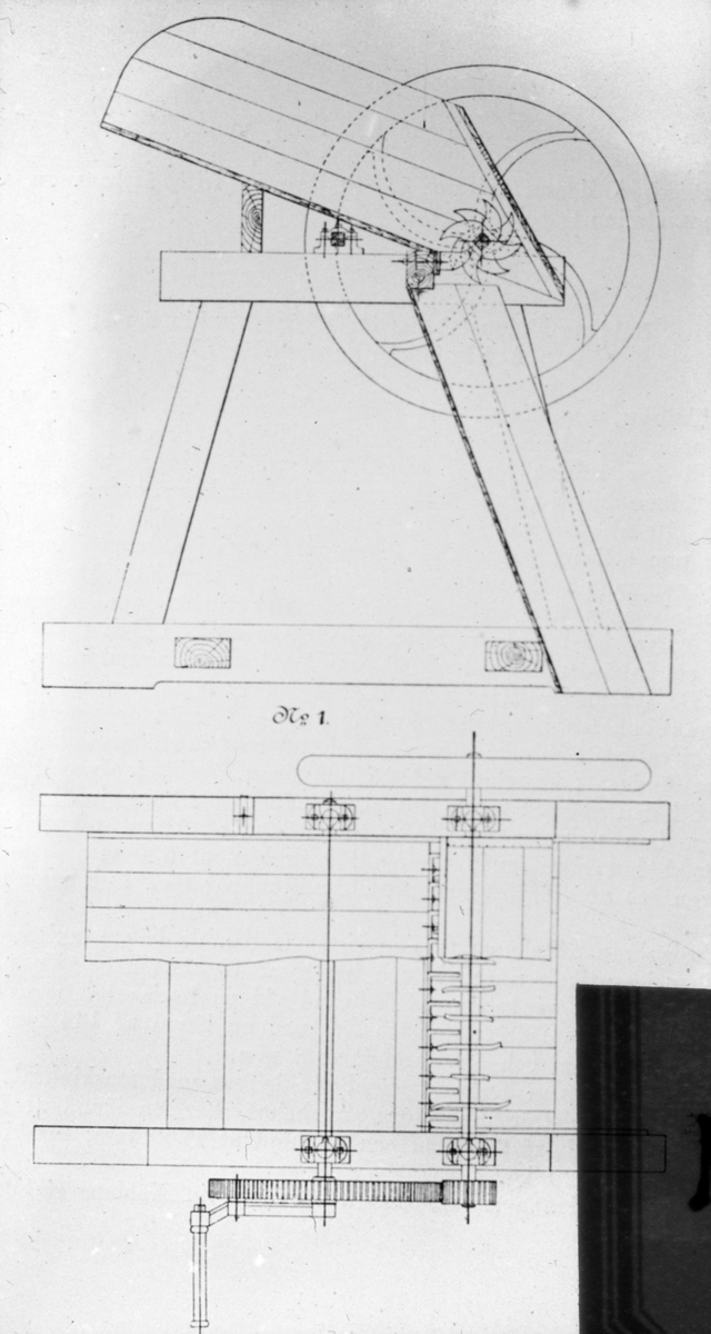Skioptikonbild. Ritning av torvberedningsmaskin.