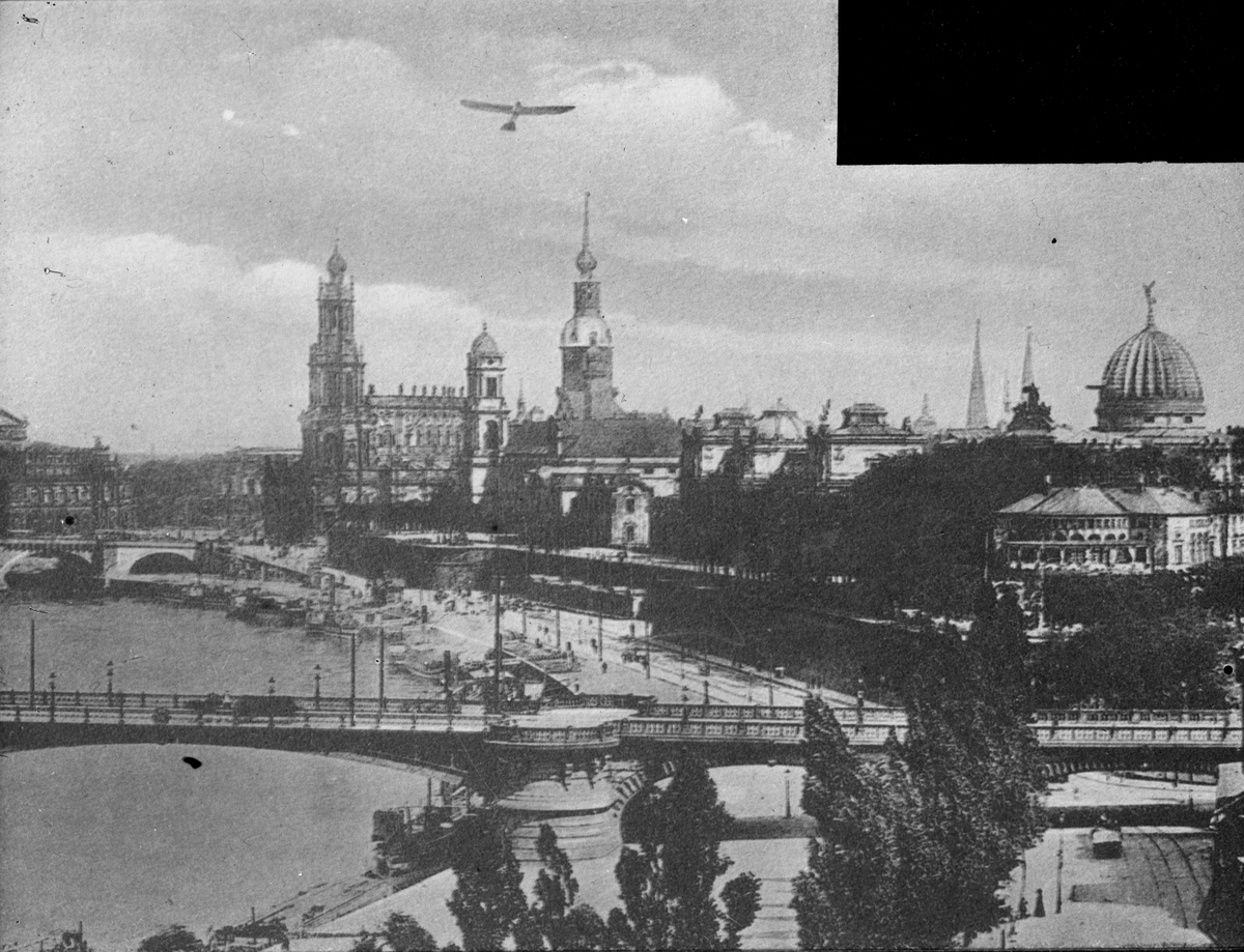 Skioptikonbild med motiv av stadsvy över Dresden, Altstadt (gamla stan).
