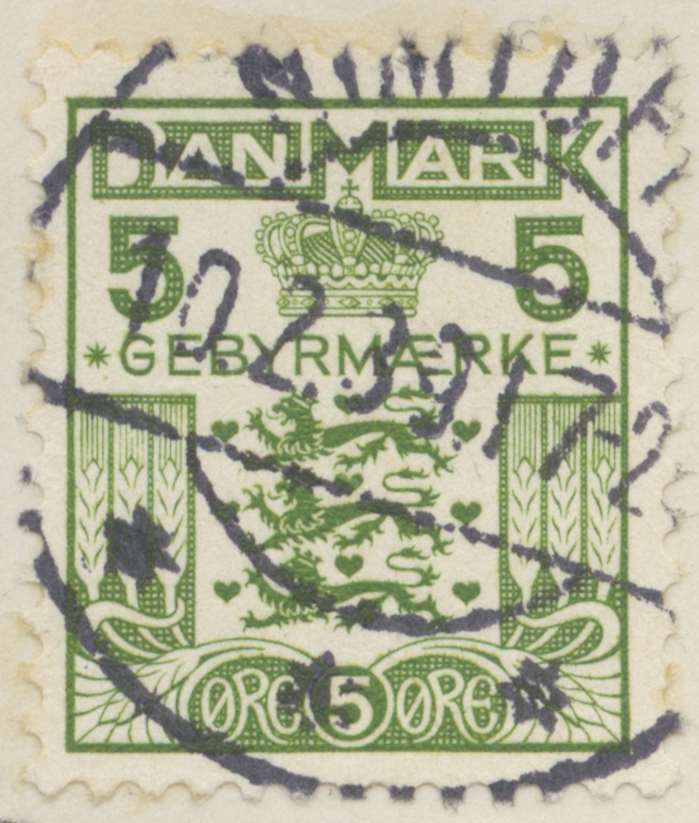 Frimärke från Danmark, 1930. Motiv av Danmarks tre Vapen Lejon