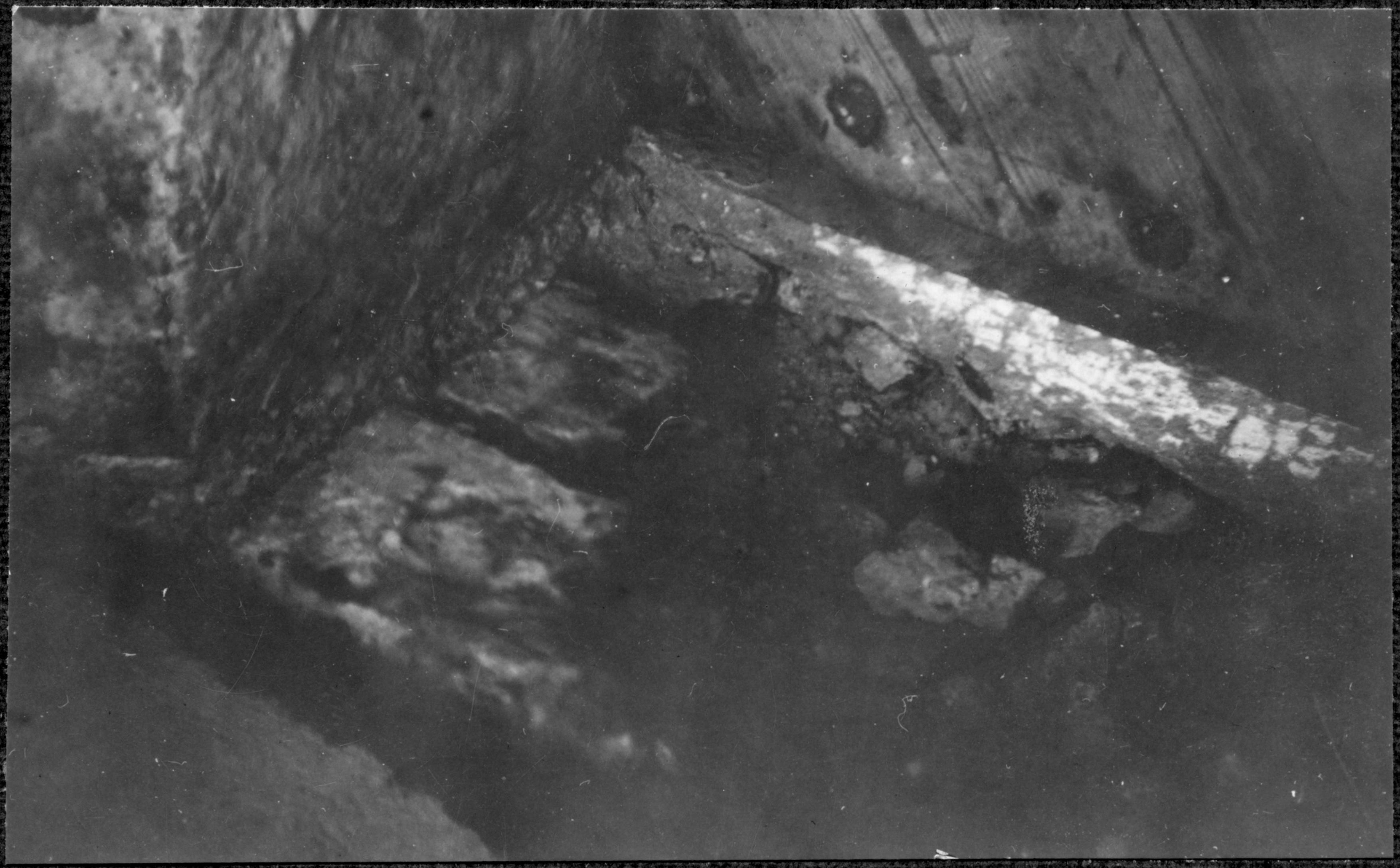 De påträffande resterna av tröskel i dörrhålet mellan långhuset och tornet.
