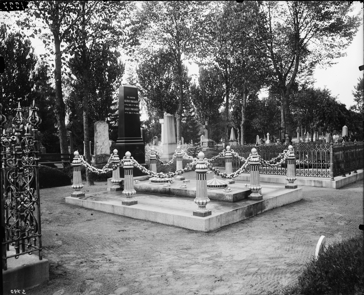 Större grav med 9 piedestaler, kätting, gravdäcklar och ringar.