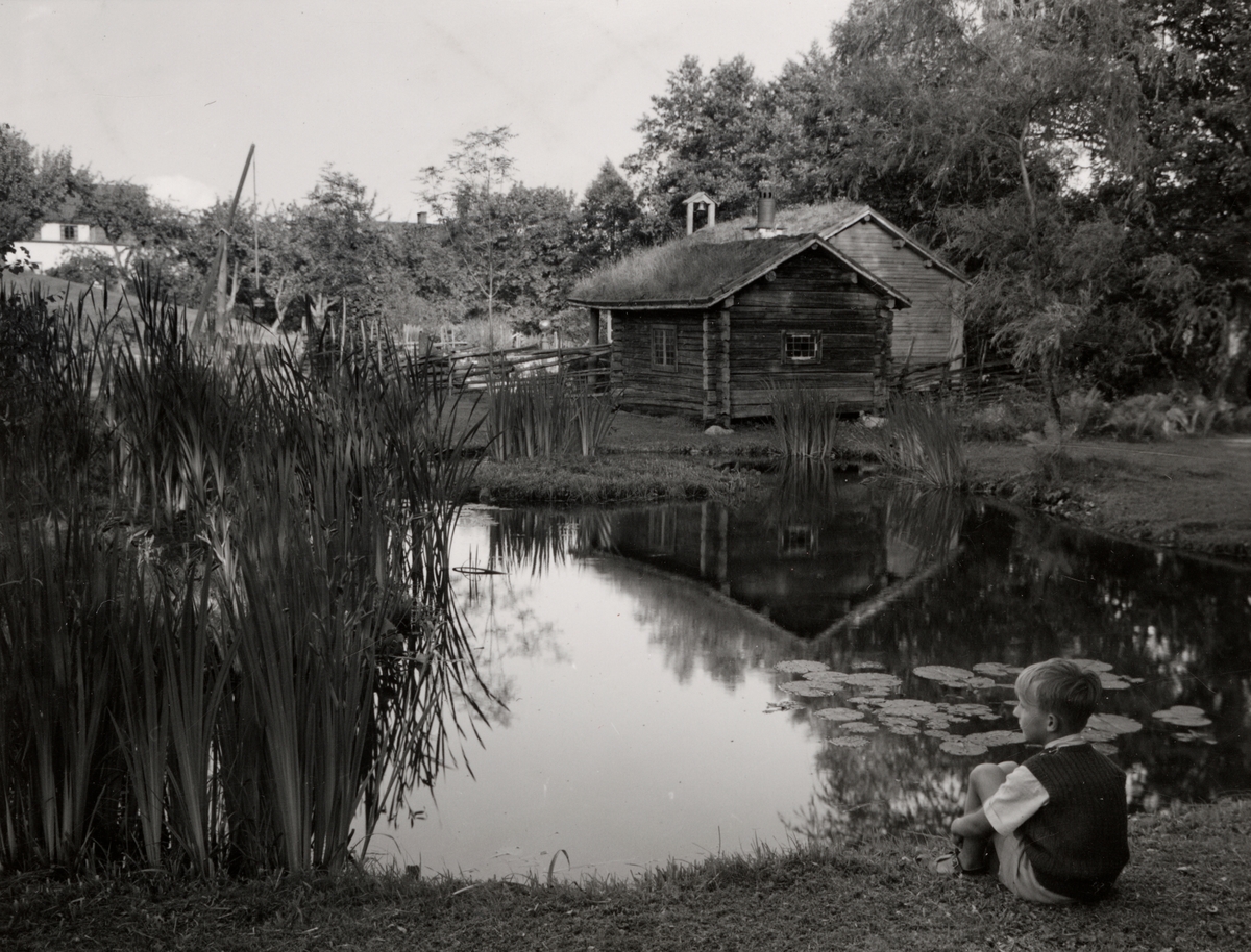 Motiv från Nora Tändrörsfabrik. Pojke vid sjö.