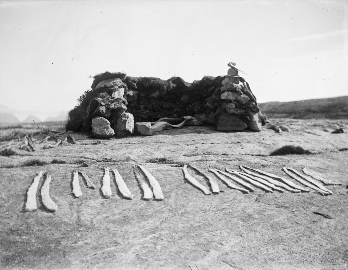 Fotografi från Grönland. Motiv av fisk som torkas på klippa.
