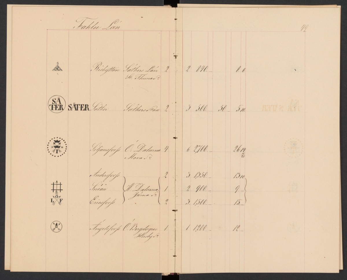 Stämpelbok för Sveriges järnbruk på 1850-talet.