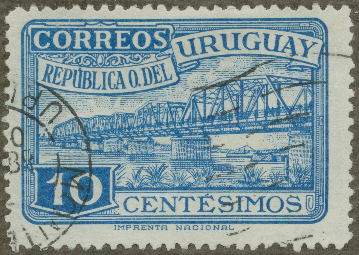 Frimärke från Uruguay, 1948. Motiv av Stor bro i fackverkskonstruktion