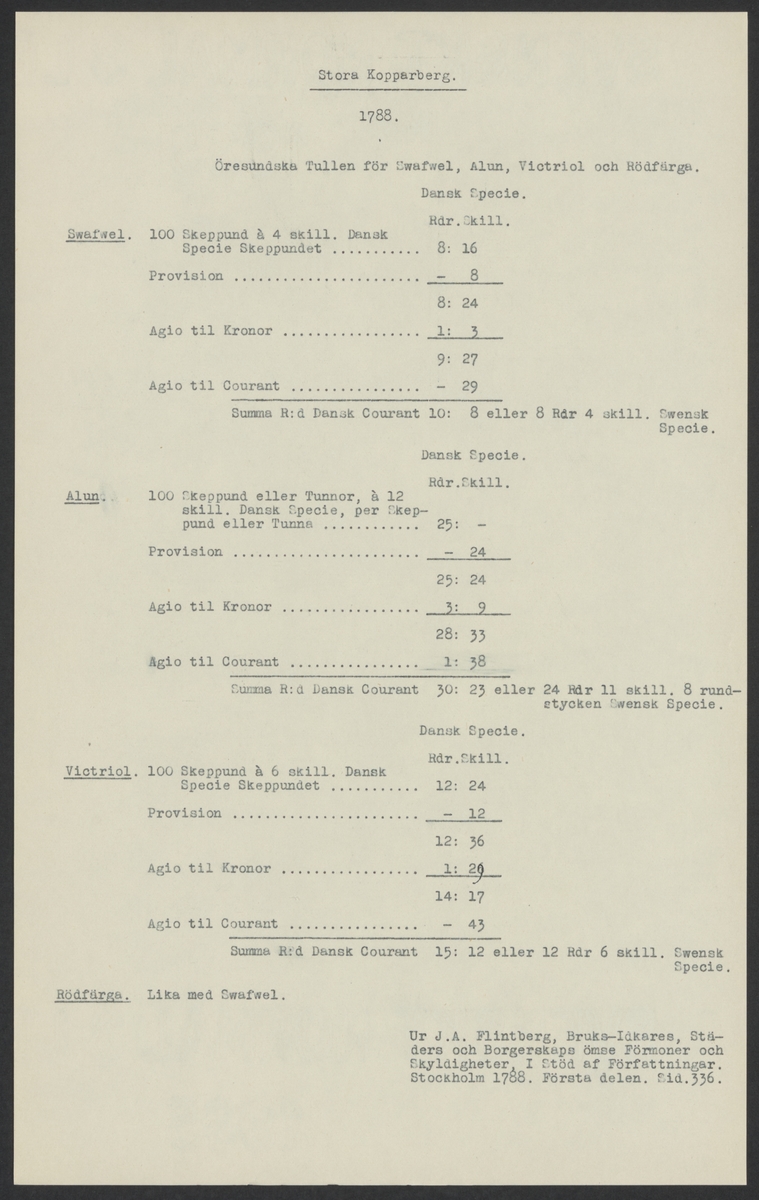 Titel: Stora Kopparbergets kronologi. Ur Carl Sahlins bergshistoriska samling.