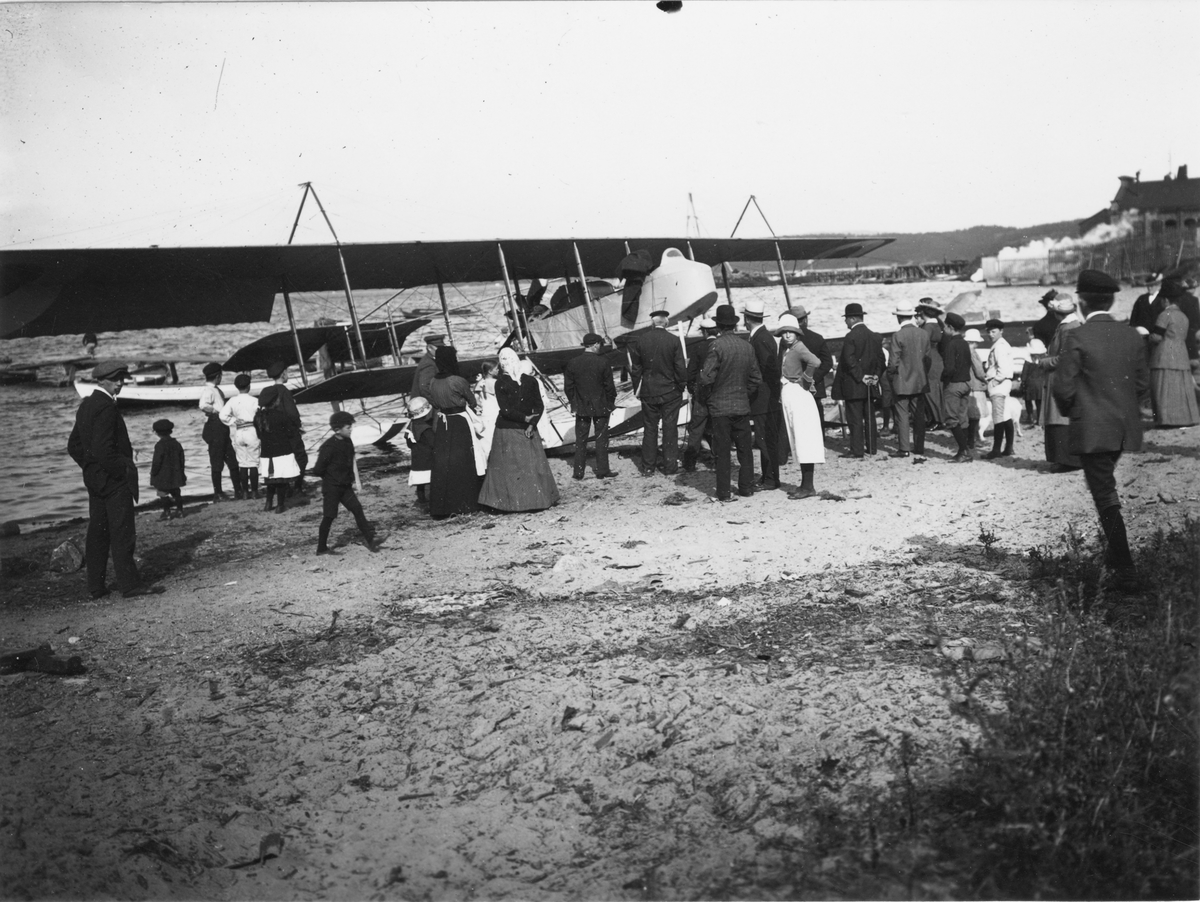 Löjtnant Kronstedt med Fahrmanflygbåt i Härnösand 1915.