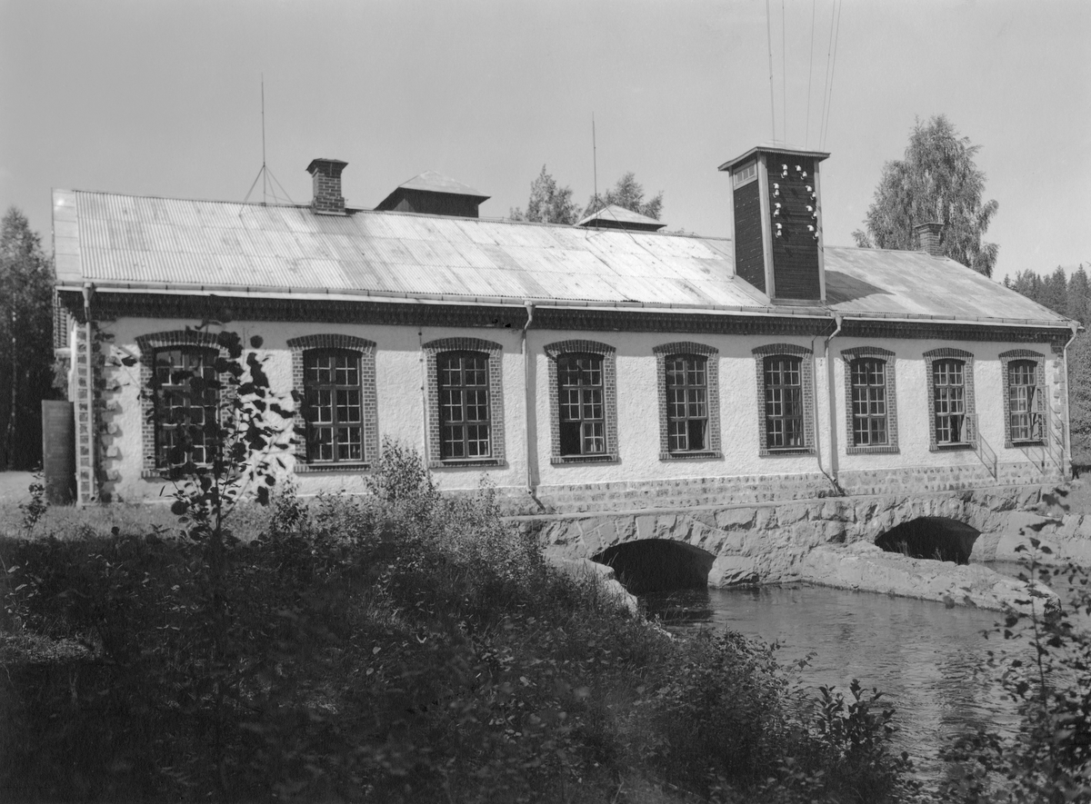 Flögfors Kraftstation. Fotograferad från nedströmssidan.