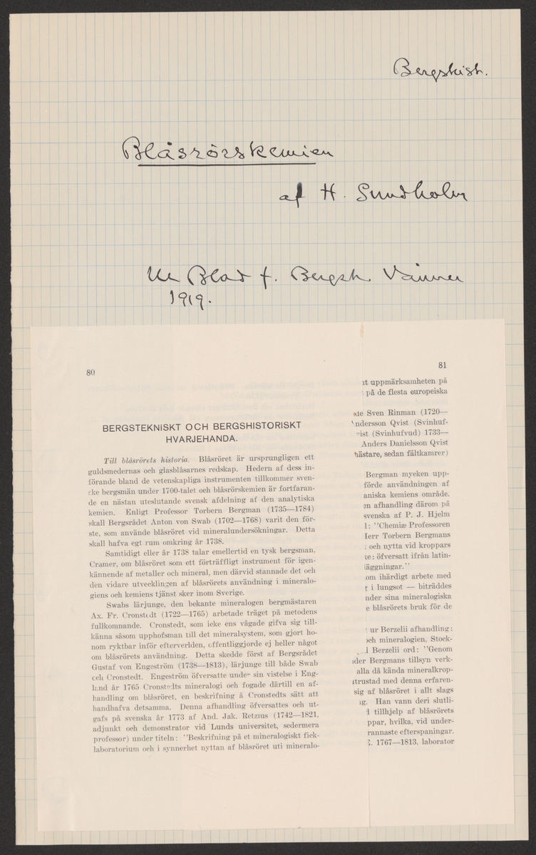 Ämnesordnade handlingar av bergshistoriskt och bergstekniskt innehåll.
