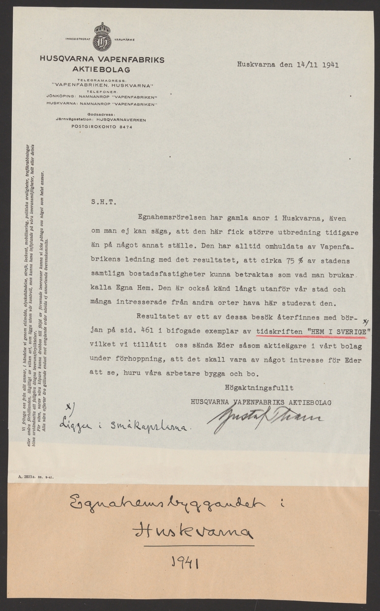Titel: Husqvarna vapenfabriks kronologi. Ur Carl Sahlins bergshistoriska samling.
