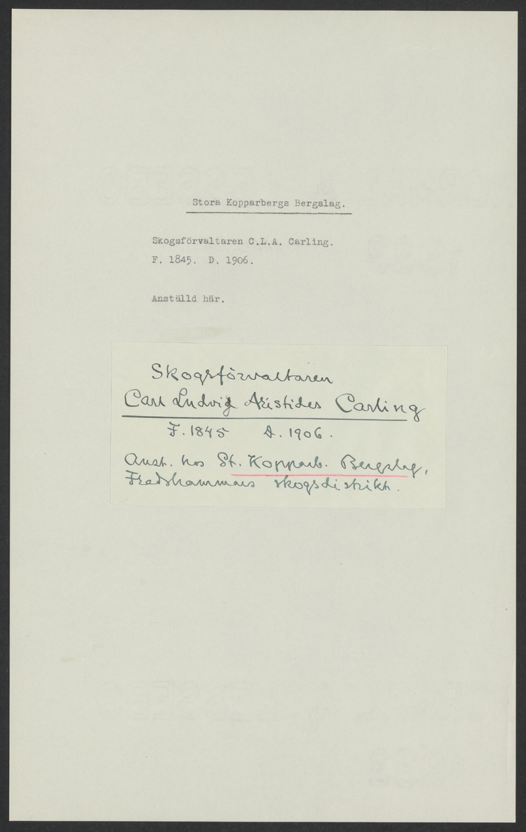 Titel: Stora Kopparbergs bergslag. Ur Carl Sahlins bergshistoriska samling.