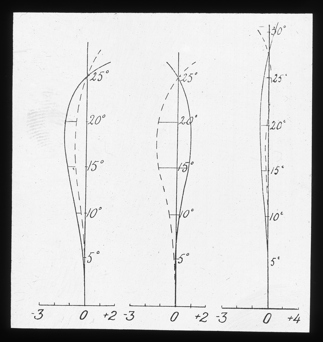 Troligen grafisk framställning av astigmatismen hos tre olika objektiv.