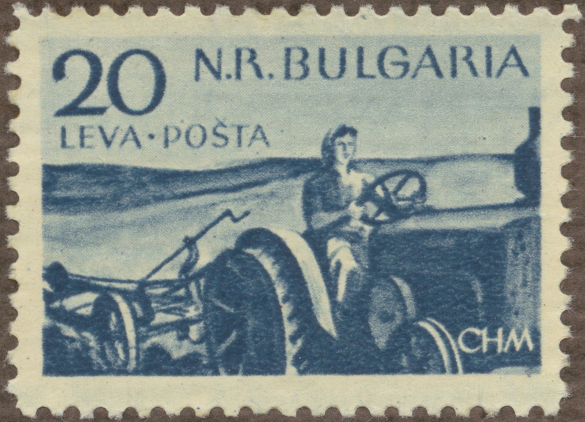 Frimärke från Bulgarien, 1949. Motiv av Bulgarisk lantbrukstraktor "Industriserie"