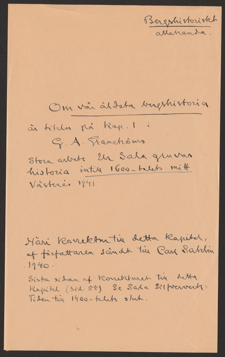 Ämnesordnade handlingar av bergshistoriskt och bergstekniskt innehåll.