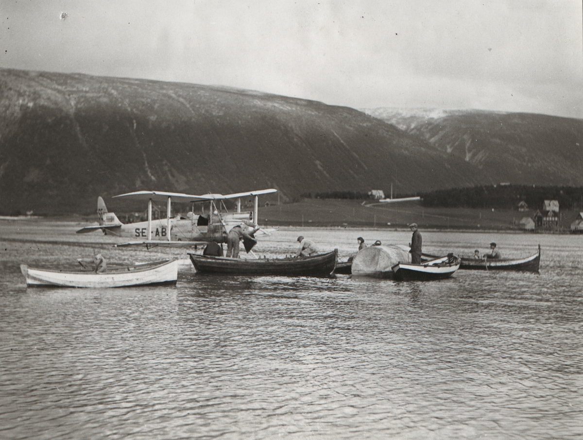 Löjtnant Marshall Lindholm avhämtar i Tromsö bildmaterialet från Andréefynden 1930.