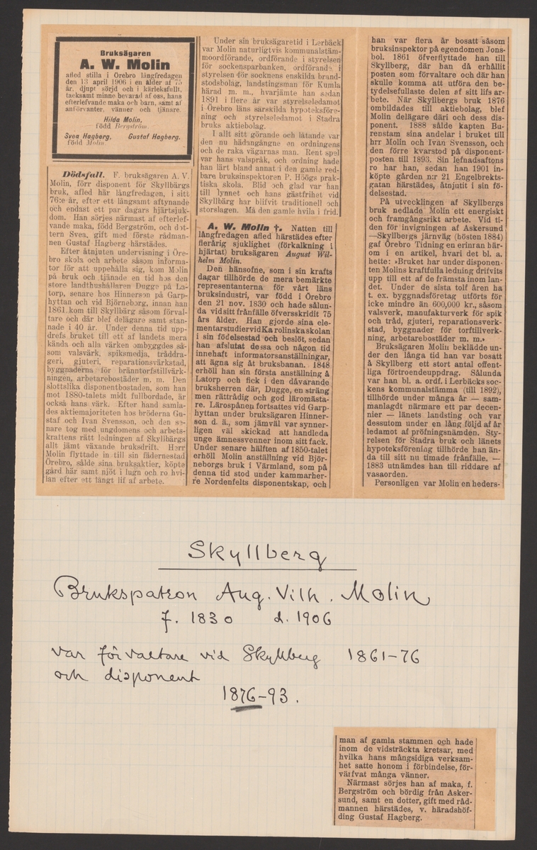 Skyllbergs bruks kronologi.