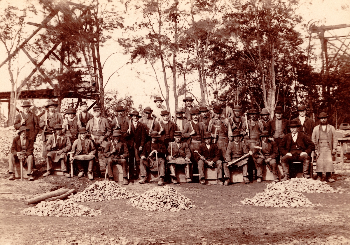 Arbetare vid Kärrgruvan, Norrbärke sn, Dalarna vid slutet av1800-talet.