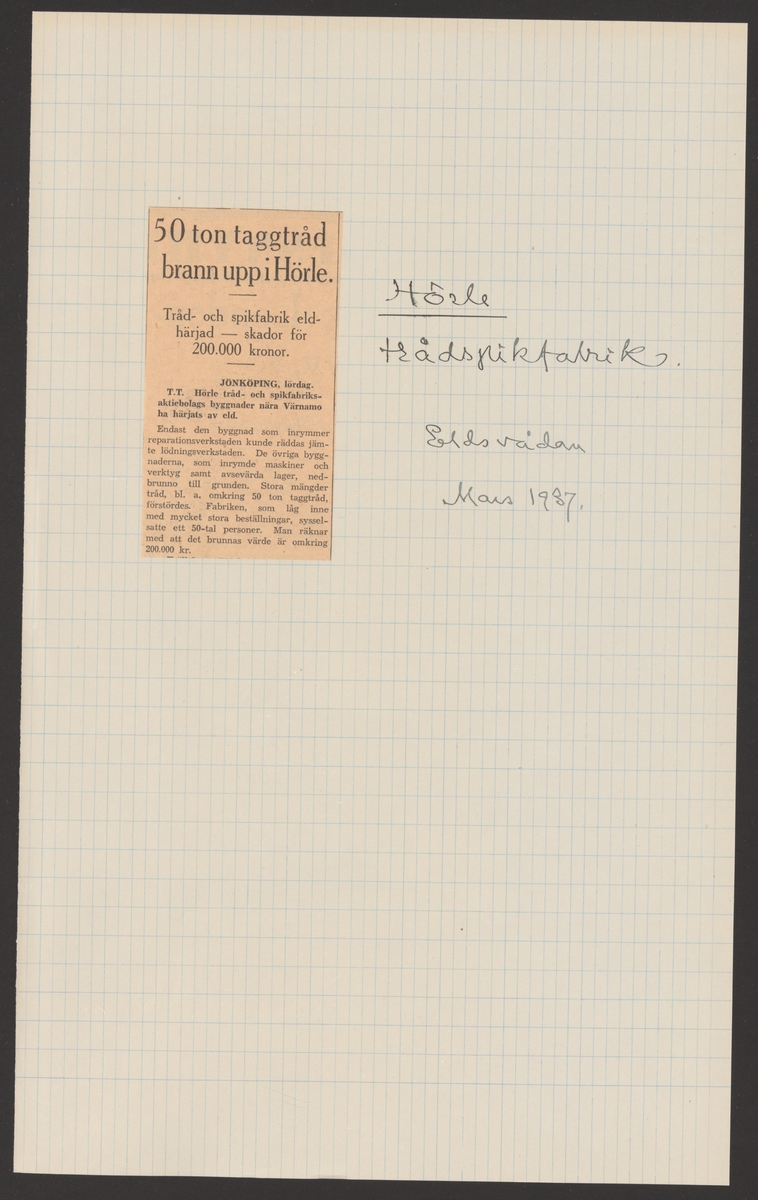 Titel: Hörle bruks kronologi. Ur Carl Sahlins bergshistoriska samling.