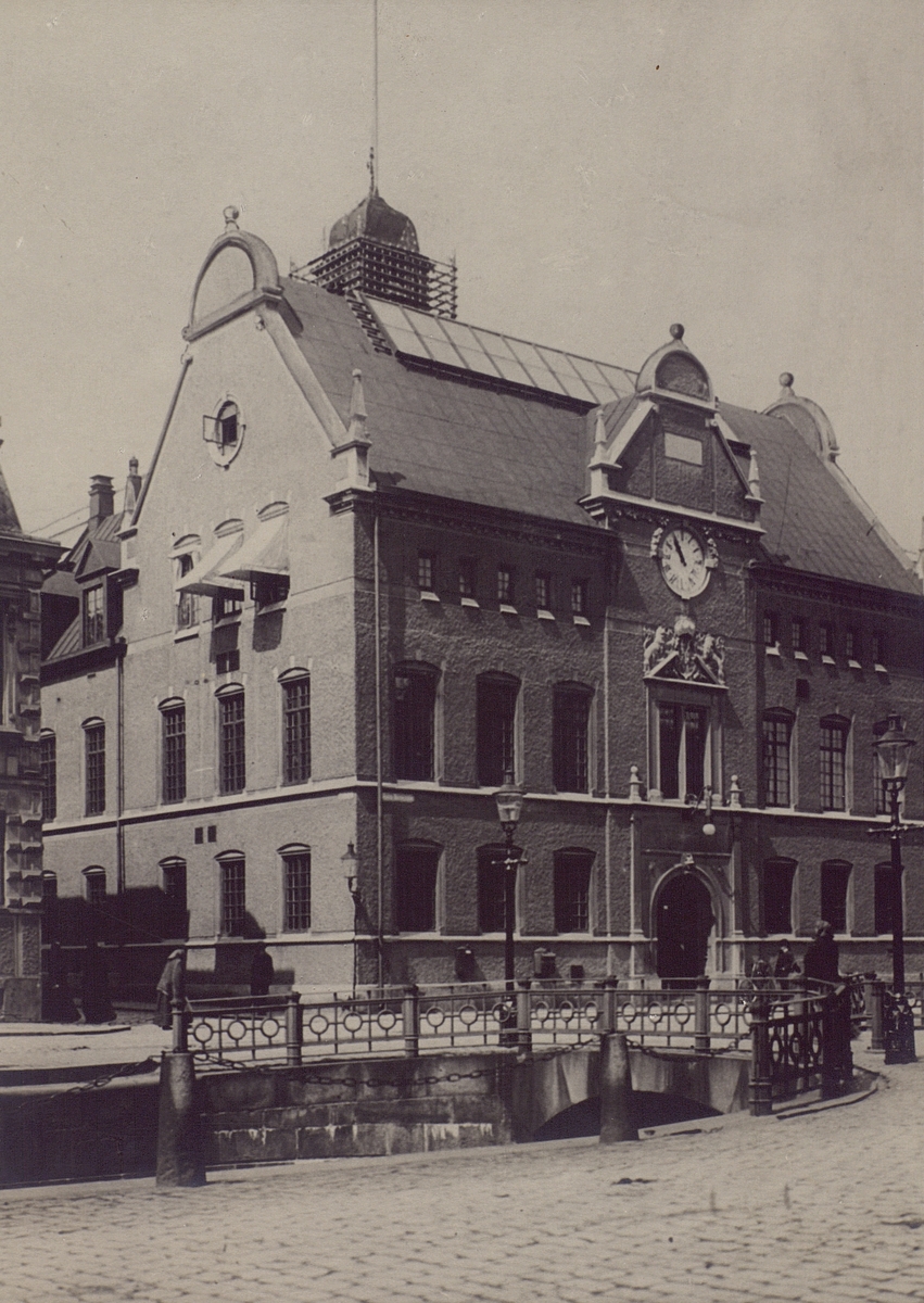 Göteborg Telefonstation Västra Hamngatan 15 i början av 1900-talet. Före kanalens igenfyllande.