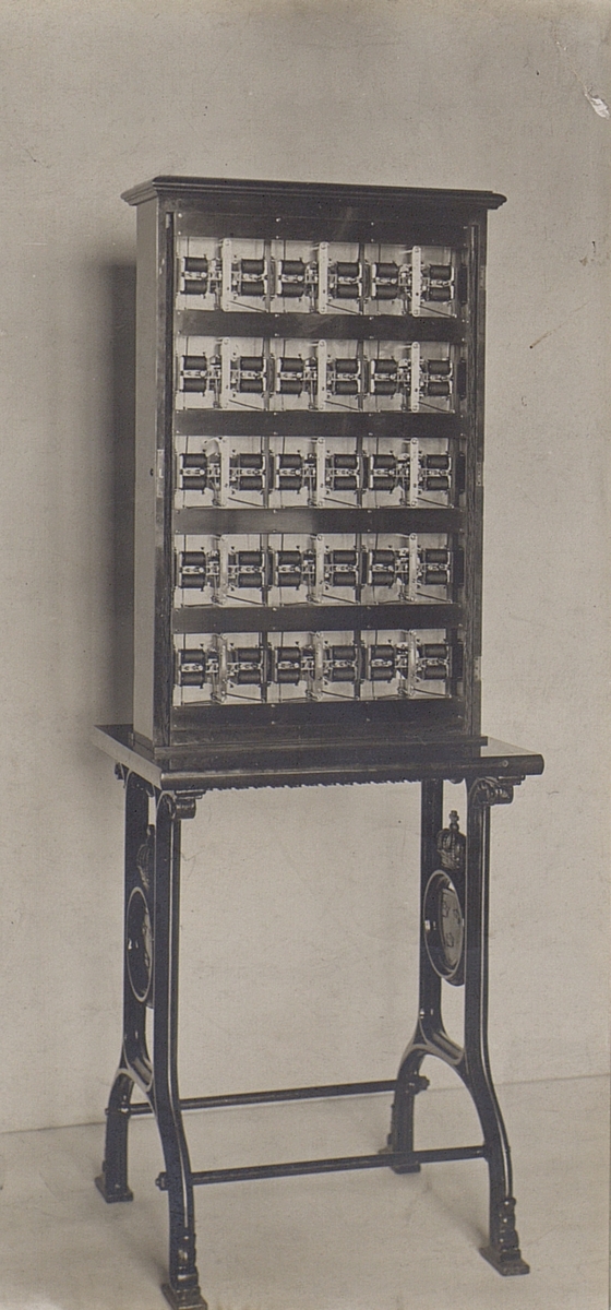Automatisk telefonväxel, konstruerad av telekommisarie J Pehrsson, Uddevalla. Utställd och diplom. Paris 1900.