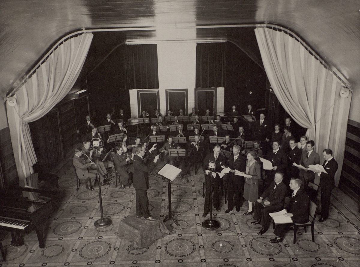 Stockholm. Stora studion vid Kungsgatan 8, avsedd för orkestermusik, år 1928.