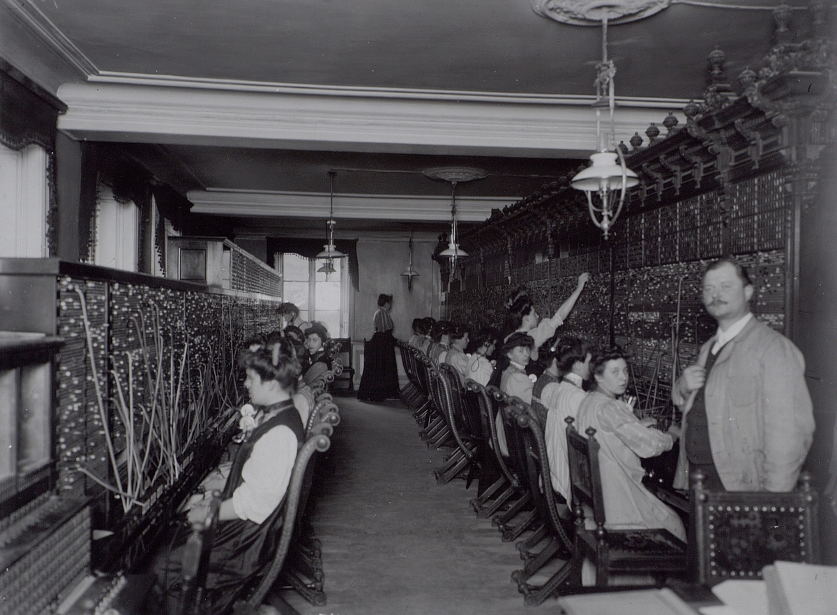 Hornsgatan 9, Stockholm. Telefonsal år 1908. Stockholms Almänna Telefonaktiebolags understation.