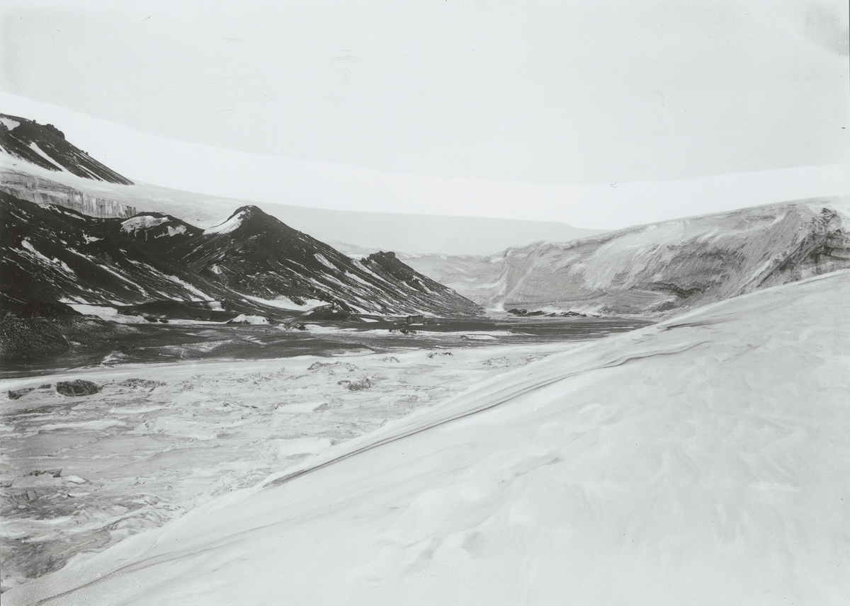 Fotografi från första svenska Antarktisexpeditionen 1901-1904. Vy över berg, snö och is.