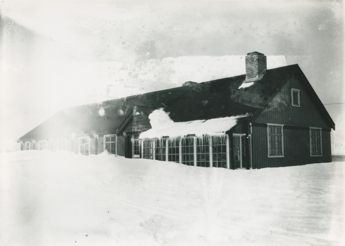 Bild från expedition i Antarktisområdet. Motiv av hus i snö.