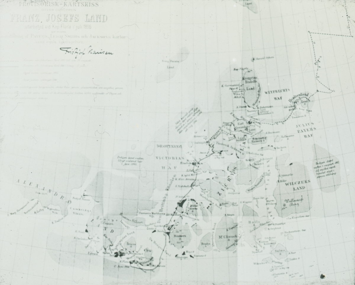 Fotografi från Grönland. Motiv av karta över Franz Josefs land.