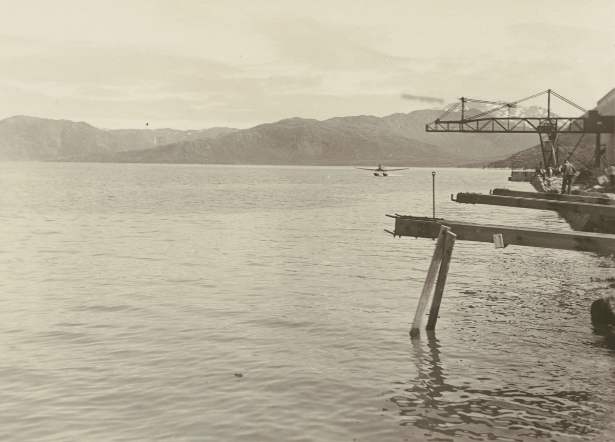 Fotografi från Albin Ahrenbergs resa till Grönland 1929. Vy över hamn i Ivigtut.