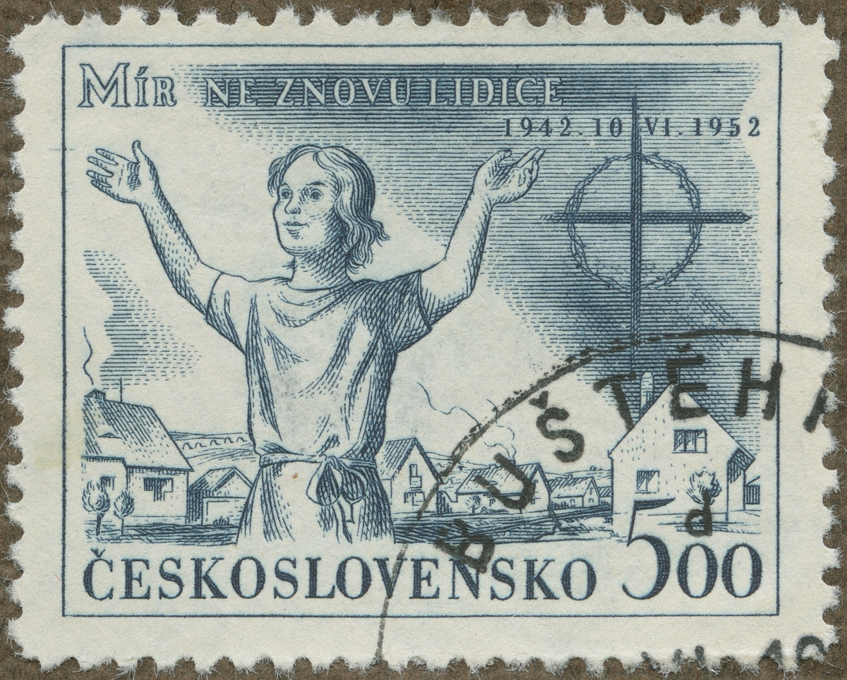 Frimärke från Tjeckoslovakiet, 1952. Motiv av Staden Lidices Förstörning av tyskerne 19.6.1942. -10-årsminne.