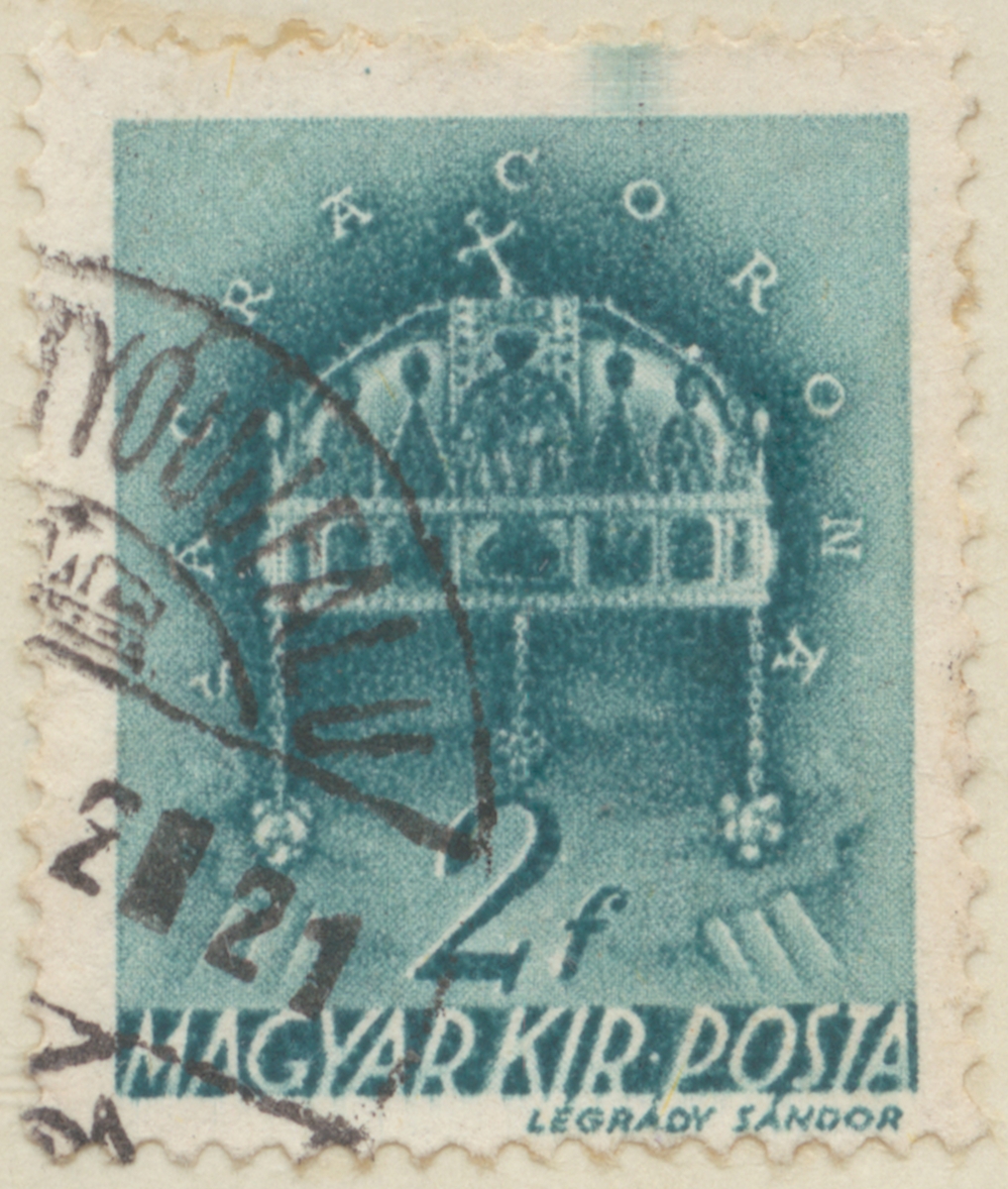 Frimärke från Ungern, 1939. Motiv av Stephans kronan -Ungerns heliga krona-