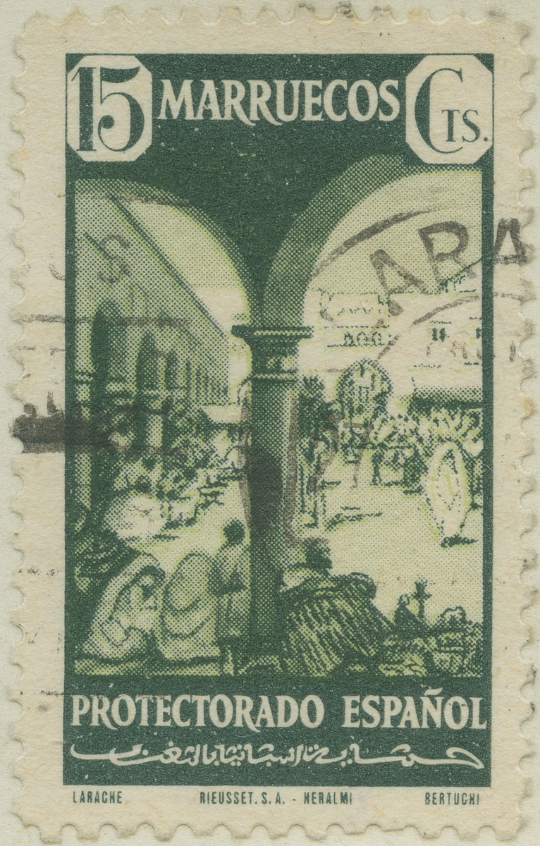 Frimärke från Spanska Marocko, 1941. Motiv av Staden Larache.