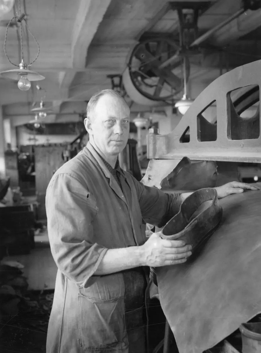 Svenska Skoindustri AB i Örebro. Ur det präktiga kärnlädret stansas sulorna.
