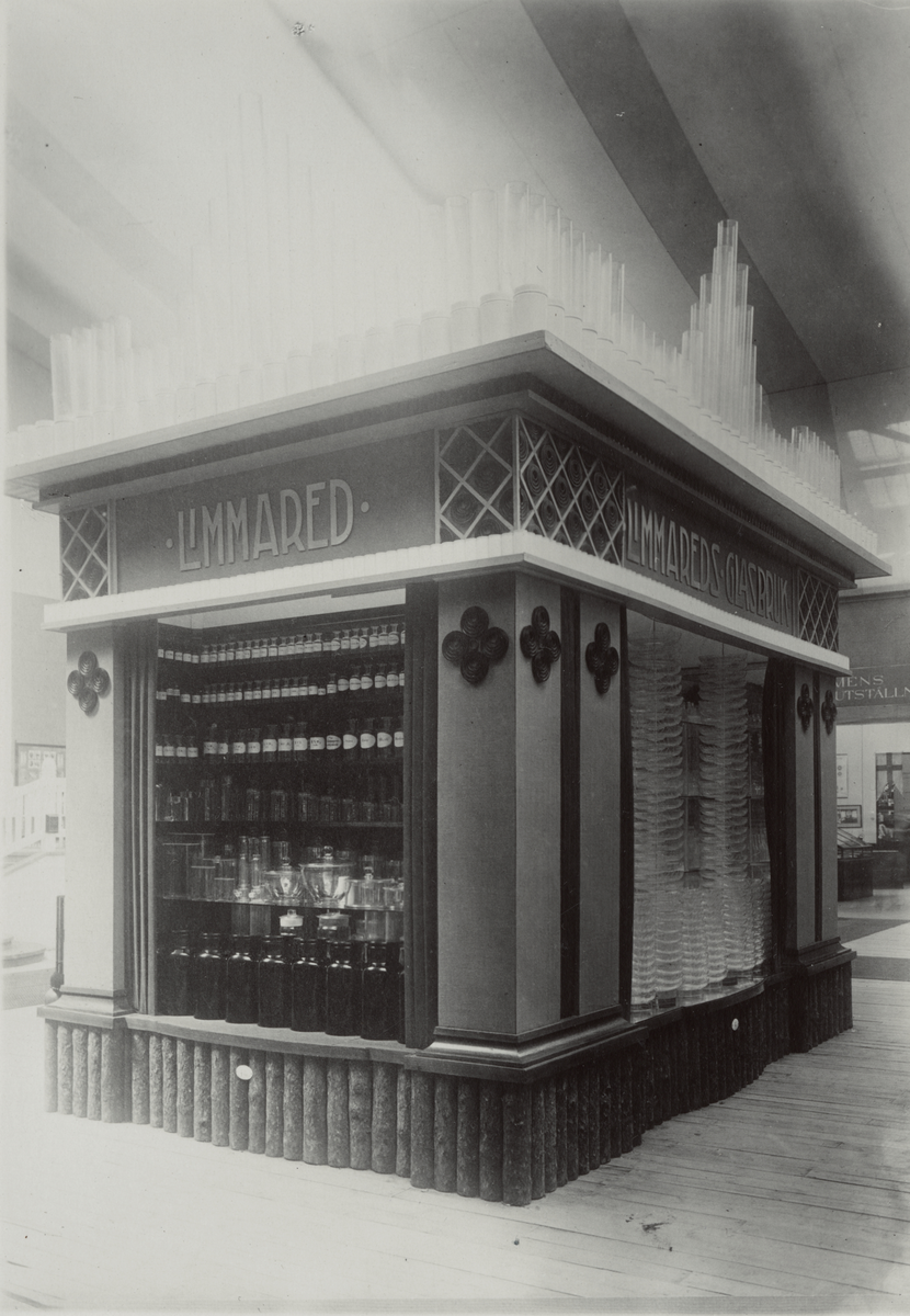Utställning i Malmö 1914. Monter för Limmareds Glasbruk. Ur album: Limmareds Glasbruk 1740-1902-1930.