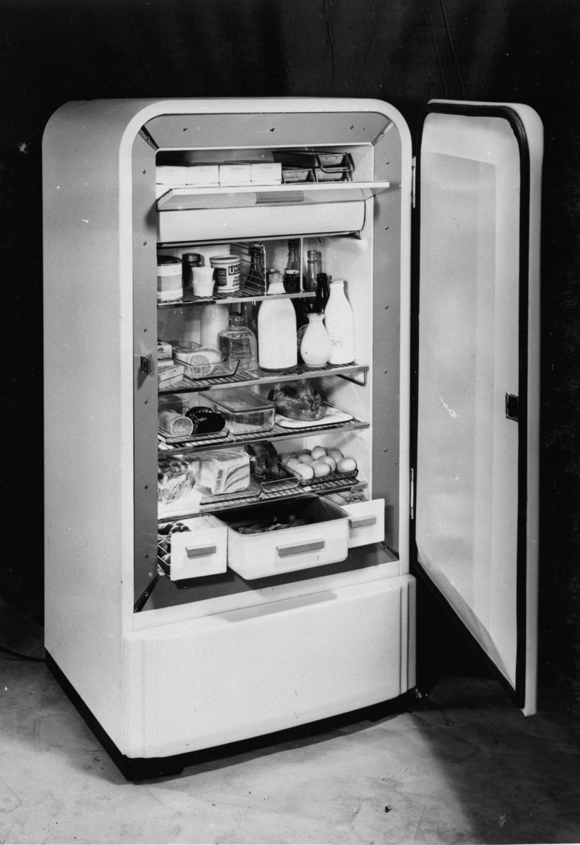 Kylskåp LT 700 (7,0 kbft).Interiör. Ett mindre antal tillverkat i Motala. Planerat för produktion 1948.