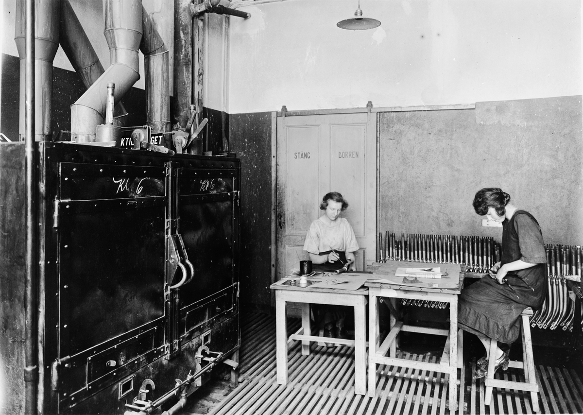 Två kvinnor arbetar med att lackera cykeldelar på Velociped AB Lindblad i Stockholm.