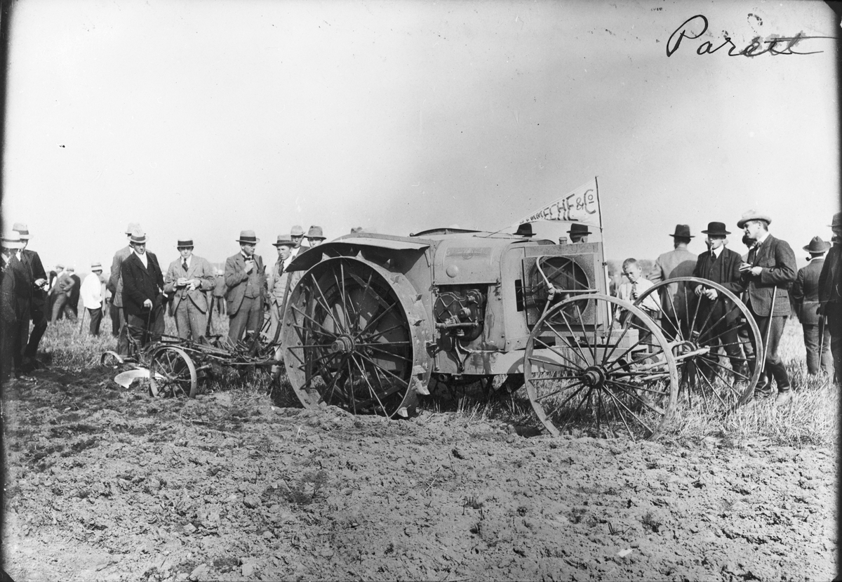 Motorplogstävling vid Hilleröd 1920. "Parret" försäljes av R. Emmeche & Co, Köpenhamn. 3 skärig.