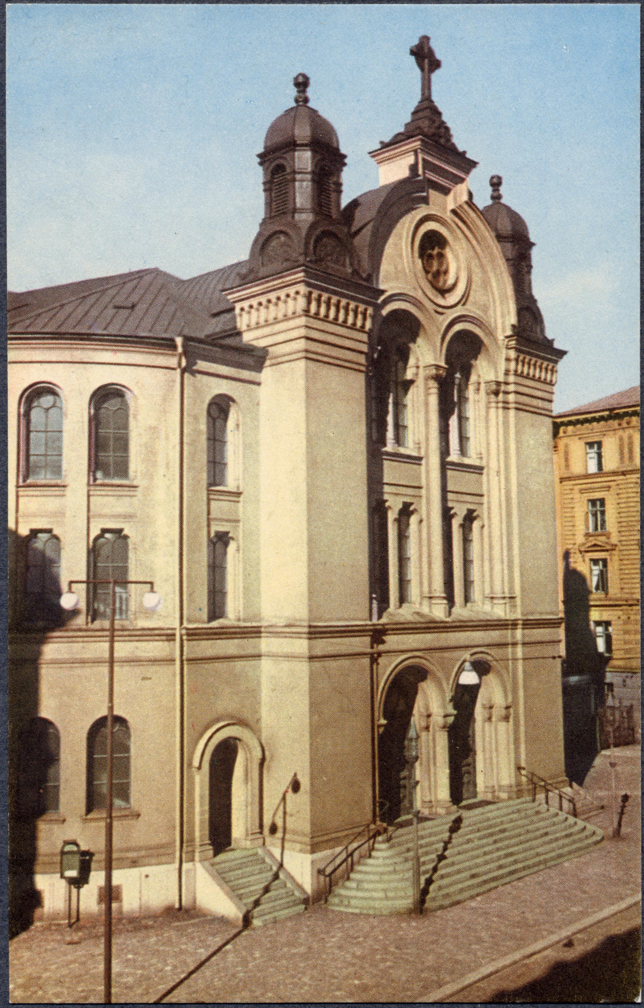 Kyrkans fasad. Vykort.