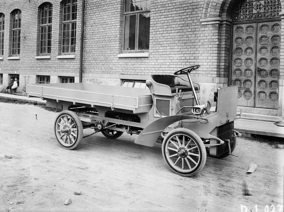 Lastautomobil utanför Gustaf LM Ericssons Automobilfabrik.